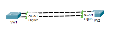 interface range gigabitEthernet 0/1-2channel-group 1 mode activechannel-protocol lacpinterface port-channel 1switchport mode trunkendSW2