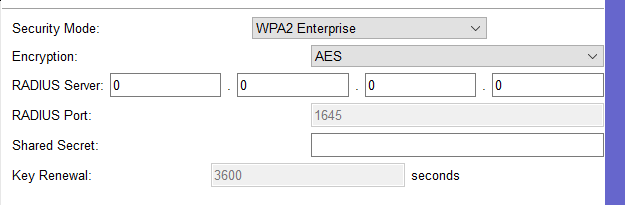 WPA2 Enterprise biztonsági mód esetén használhatunk RADIUS szervert hitelesítésre. [i] hint: RADIUS szerver oldalon részletes beállítás olvasható